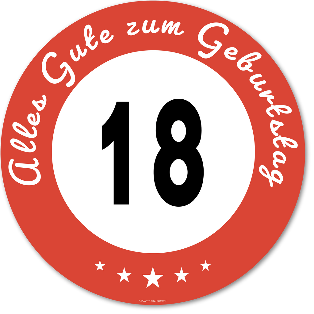 18 Geburtstag Schild Alles Gute Zum Geburtstag | UV-Schutz | Alu-Verbund | Weiss/Rot | Rund