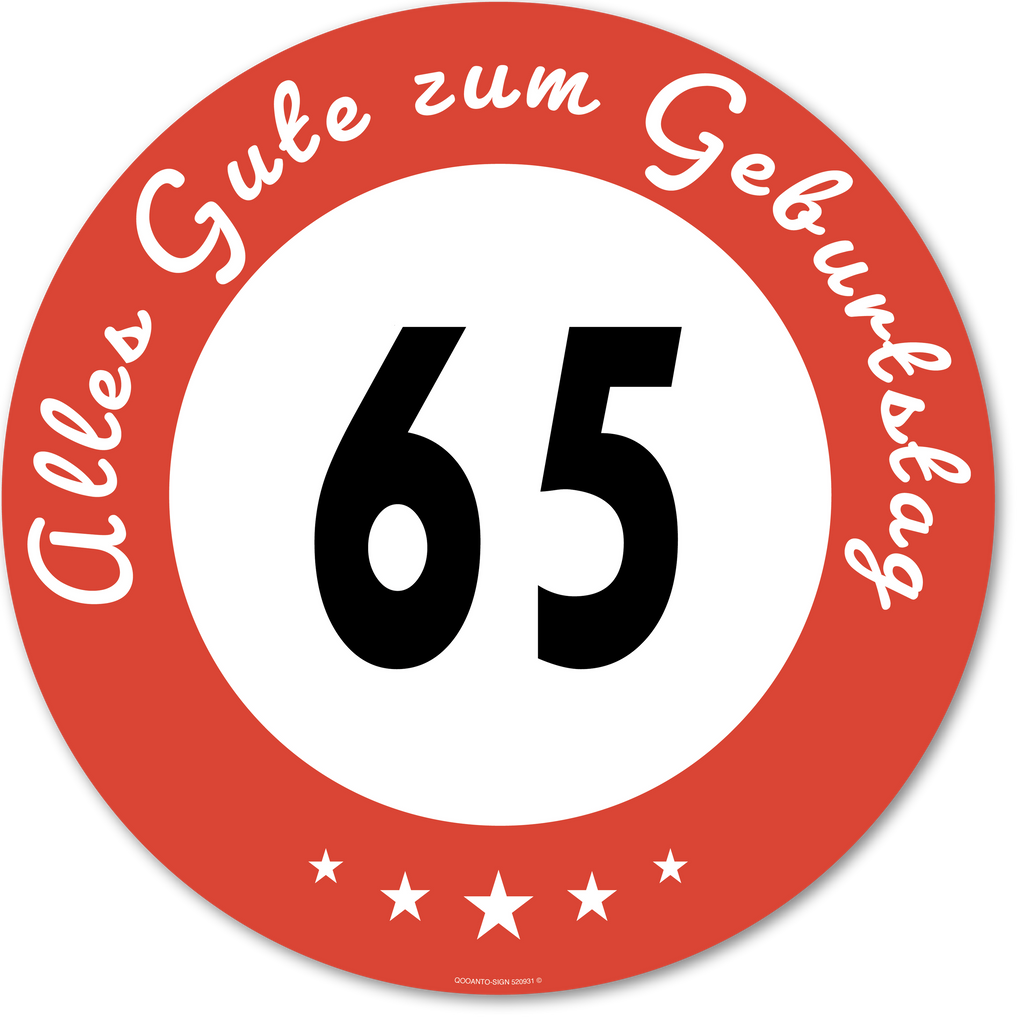 65 Geburtstag Schild Alles Gute Zum Geburtstag | UV-Schutz | Alu-Verbund | Weiss/Rot | Rund