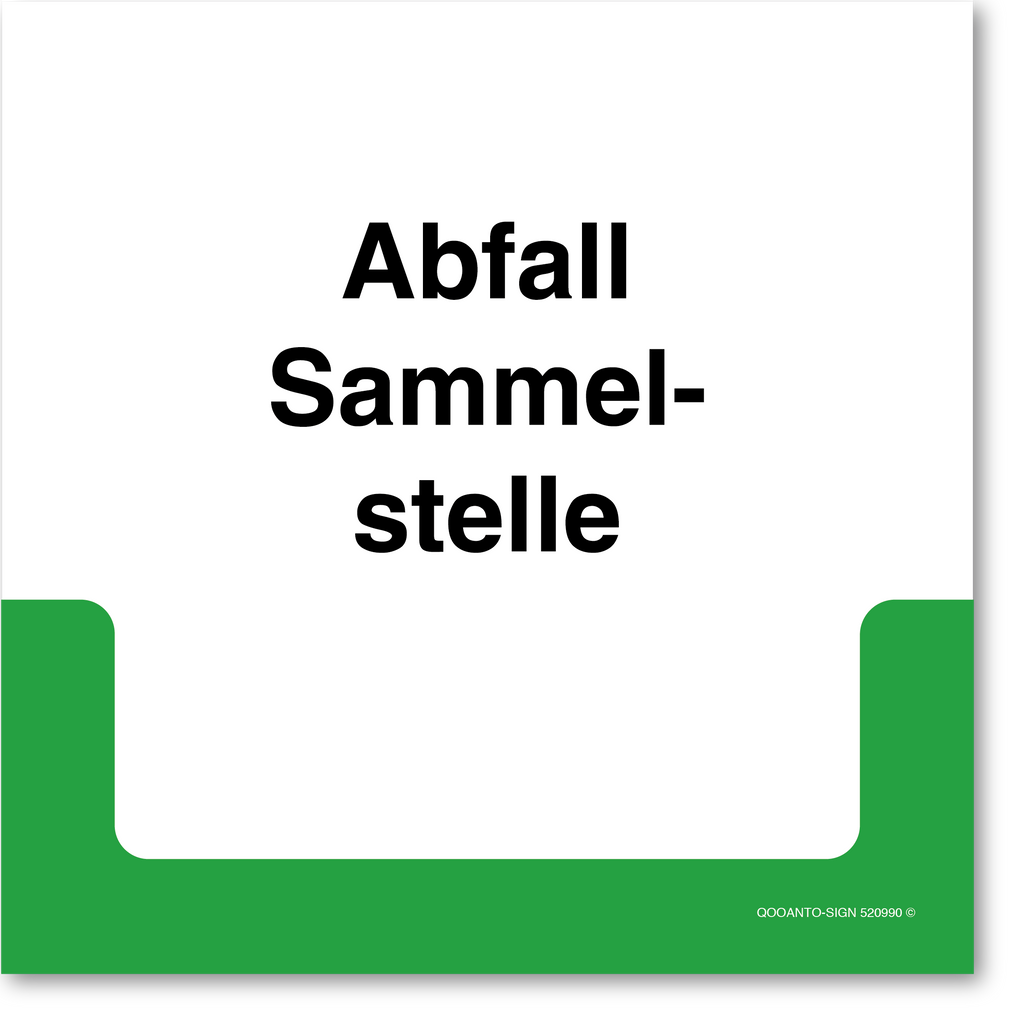 Abfallsammelstelle Schild oder Aufkleber | Alu-Verbund oder Selbstklebefolie | Weiss/Grün | Quatratisch