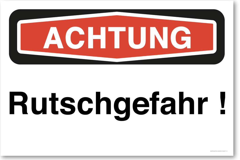• Deutlich lesbarer Hinweis "Achtung Rutschgefahr!" mit hohem Kontrast für maximale Aufmerksamkeit in allen Bereichen und Anwendungen.