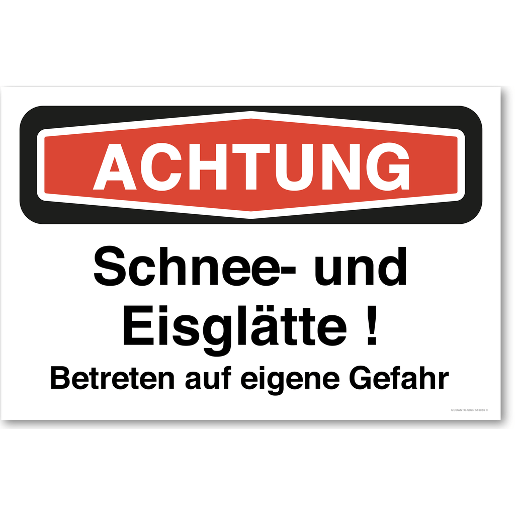Achtung Schnee- Und Eisglätte! Betreten Auf Eigene Gefahr Schild