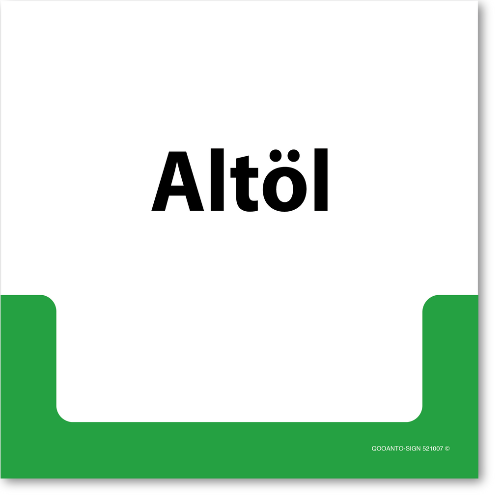 Altöl Schild oder Aufkleber | Alu-Verbund oder Selbstklebefolie | Weiss/Grün | Quatratisch