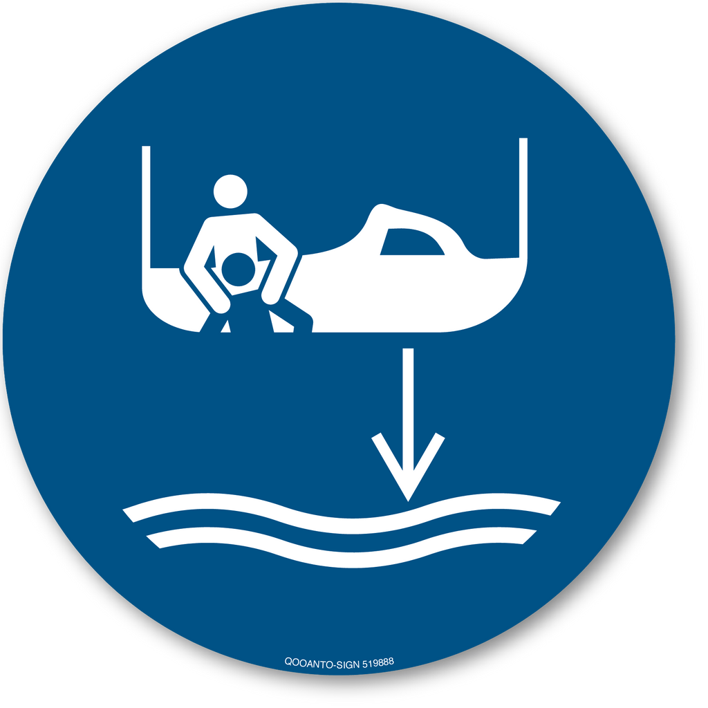 Bereitschaftsboot Fieren Beim Aussetzvorgang, EN ISO 7010, M041 Gebotsschild oder Aufkleber | Alu-Verbund oder Selbstklebefolie | Blau/Weiss | Rund