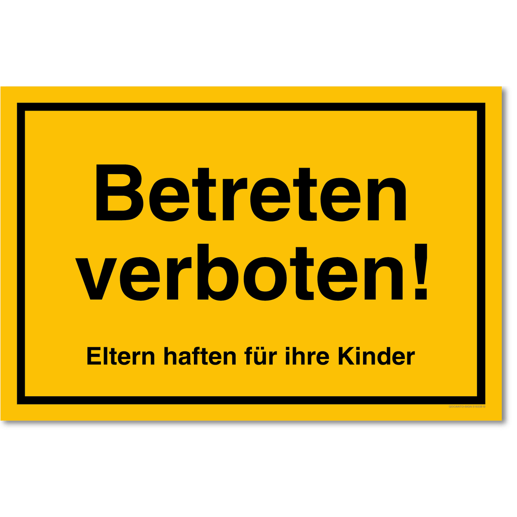 Betreten Verboten! Eltern Haften Für Ihre Kinder! Schild | Alu-Verbund | Gelb | Rechteck | Querformat