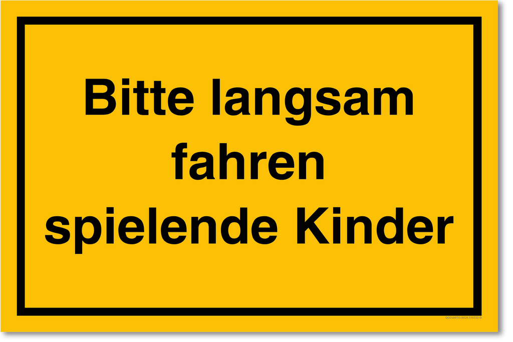 Bitte Langsam Fahren - Spielende Kinder Schild | Alu-Verbund | Gelb | Rechteck | Querformat