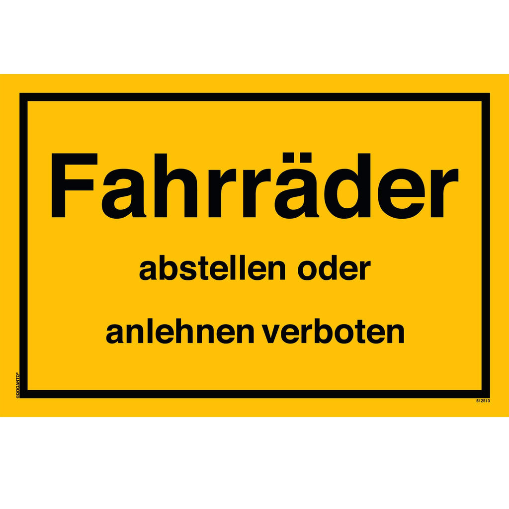 Fahrräder Abstellen Oder Anlehnen Verboten Schild oder Aufkleber | Alu-Verbund oder Selbstklebefolie | Gelb | Rechteck | Querformat