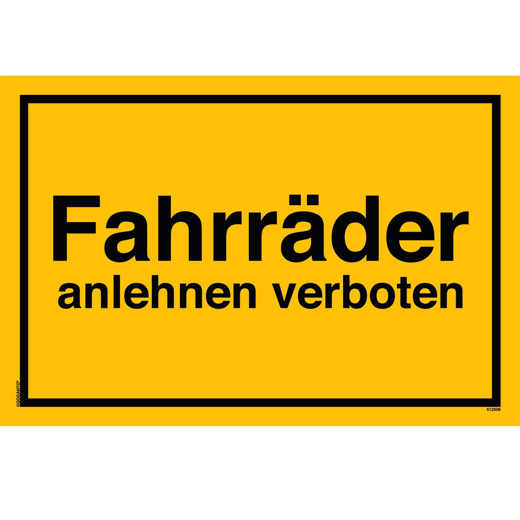 Fahrräder Anlehnen Verboten Schild | Alu-Verbund | Gelb | Rechteck | Querformat