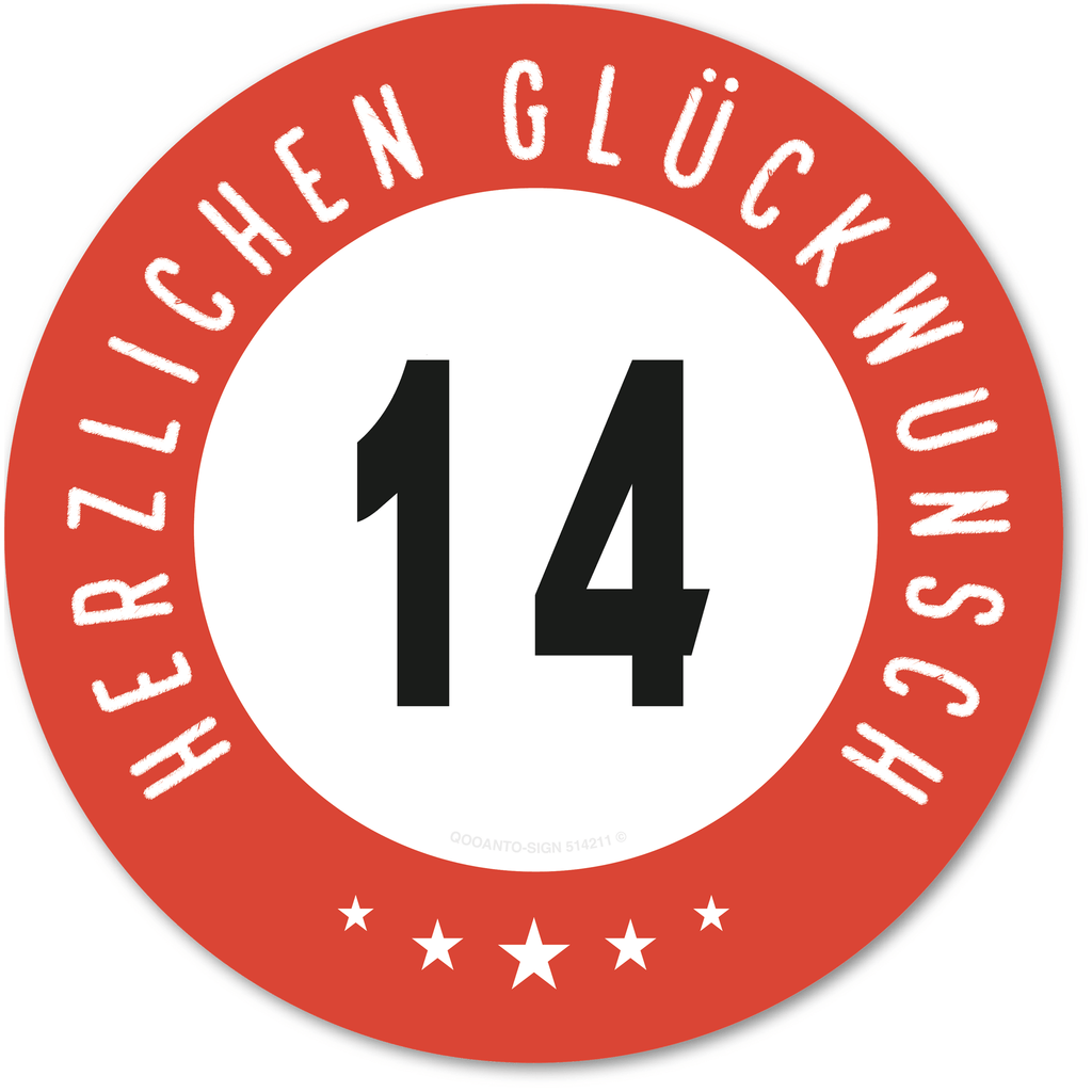 14 Geburtstag Schild Herzlichen Glückwunsch | UV-Schutz | Alu-Verbund | Weiss/Rot | Rund