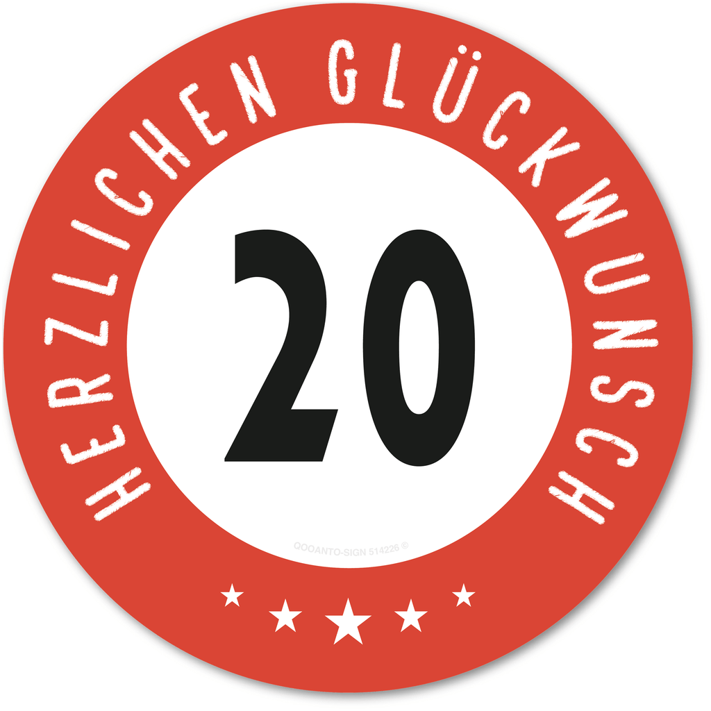 20 Geburtstag Schild Herzlichen Glückwunsch | UV-Schutz | Alu-Verbund | Weiss/Rot | Rund