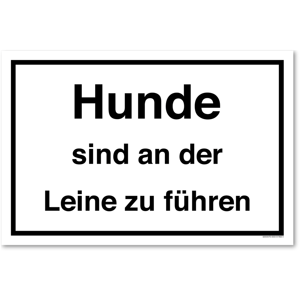 Hunde Sind An Der Leine Zu Führen Hundeschild oder Aufkleber | Alu-Verbund oder Selbstklebefolie | Weiss | Rechteck | Querformat