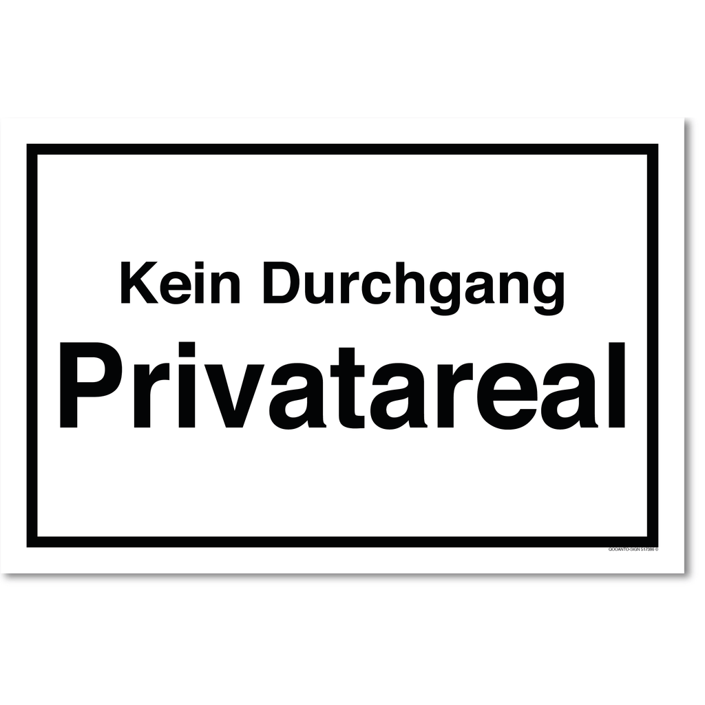 Vertrauen Sie auf unser Kein Durchgang Privatareal Schild oder Aufkleber, um Ihr Grundstück effektiv abzusichern. Bestellen Sie noch heute und setzen Sie klare Grenzen!