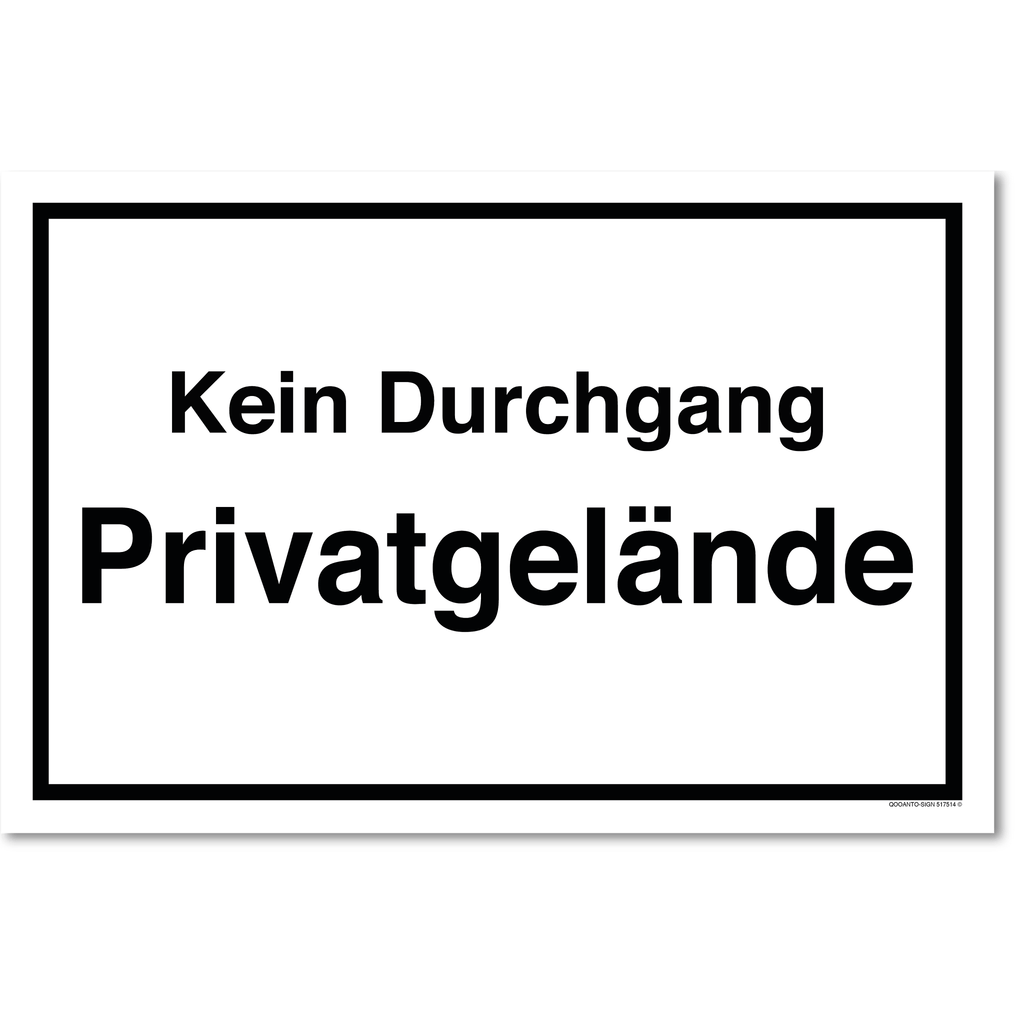 Kein Durchgang Privatgelände Schild oder Aufkleber | Alu-Verbund oder Selbstklebefolie | Weiss | Rechteck | Querformat