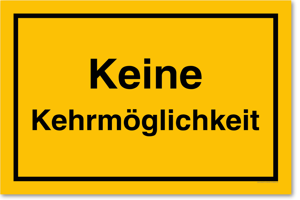 Das Keine Kehrmöglichkeit Schild in Gelb aus Alu-Verbund sorgt für klare Kommunikation und sofortige Aufmerksamkeit in allen Bereichen. Mit seiner robusten Bauweise, sorgfältiger Verarbeitung und dem deutlichen Schriftzug bietet es auch bei schlechten Lichtverhältnissen eine hervorragende Sichtbarkeit – innen wie außen.