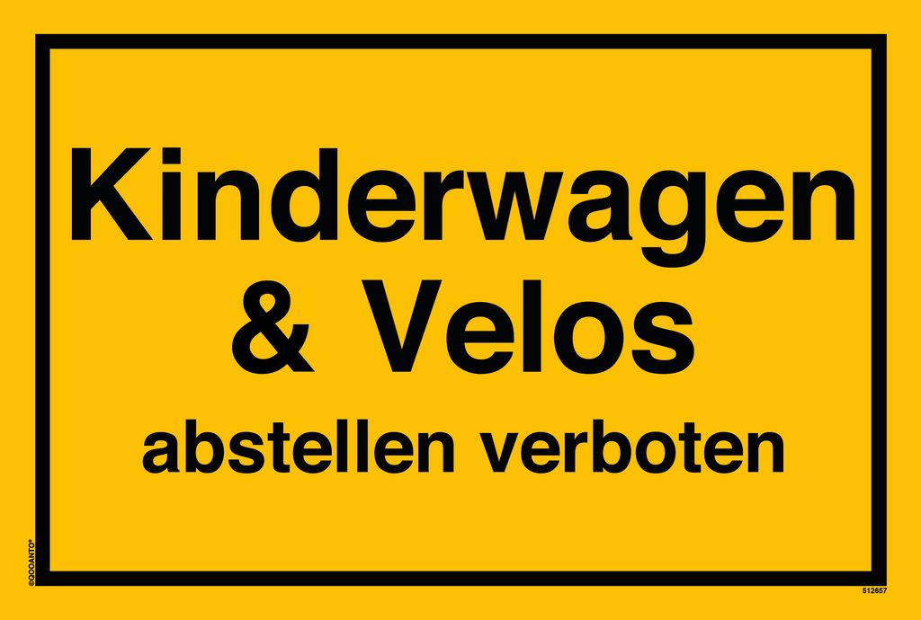 Setzen Sie klare Zeichen mit unserem Kinderwagen & Velos Abstellen Verboten Schild. Dieses Schild aus hochwertigem Alu-Verbund in leuchtendem Gelb sorgt dafür, dass Ihre Botschaft unmissverständlich ankommt.