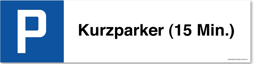Kurzparker (15 Min.) Parkplatzschild | Alu-Verbund | Weiss/Blue | Verlängert