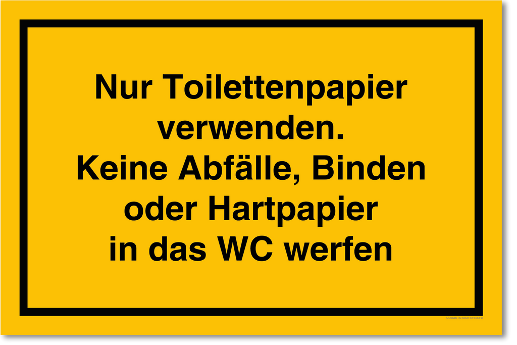 Mit diesem Hinweisschild setzen Sie klare Regeln: Nur Toilettenpapier verwenden und keine Abfälle, Binden oder Hartpapier ins WC werfen. Das Schild ist aus hochwertigem 3 mm starkem Alu-Verbund gefertigt, auffällig gelb und mit UV-Schutz versehen – damit die Botschaft auch bei/Dämmerung dauerhaft gut lesbar bleibt.
