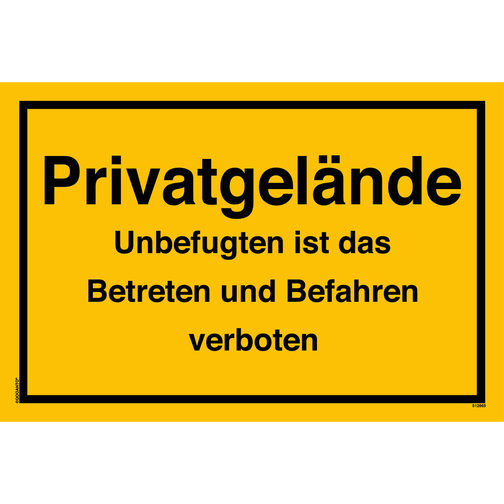 Privatgelände Unbefugten Ist Das Betreten Und Befahren Verboten Schild oder Aufkleber | Alu-Verbund oder Selbstklebefolie | Gelb | Rechteck