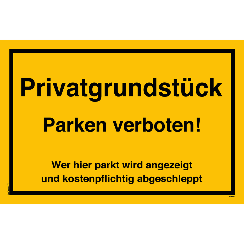 Privatgrundstück Parken Verboten! Wer Hier Parkt Wir Angezeigt Und Kostenpflichtig Abgeschleppt Schild | Alu-Verbund | Gelb | Rechteck | Querformat