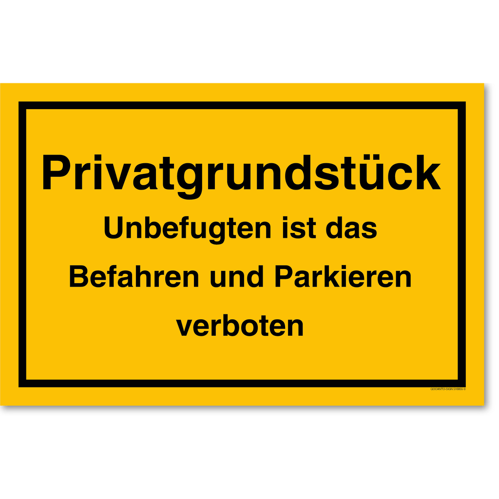 Privatgrundstück Unbefugten Ist Das Befahren Und Parkieren Verboten Schild | Alu-Verbund | Gelb | Rechteck | Querformat