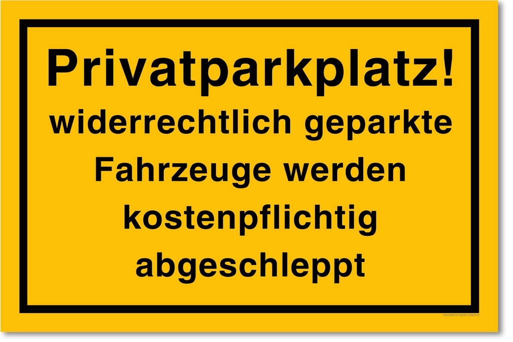 Privatparkplatz! Widerrechtlich Geparkte Fahrzeuge Werden Kostenfplichtig Abgeschleppt Schild | Alu-Verbund | Gelb | Rechteck | Querformat