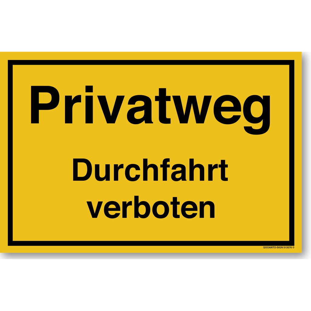 Privatweg Durchfahrt Verboten Schild oder Aufkleber | Alu-Verbund oder Selbstklebefolie | Gelb | Rechteck | Querformat