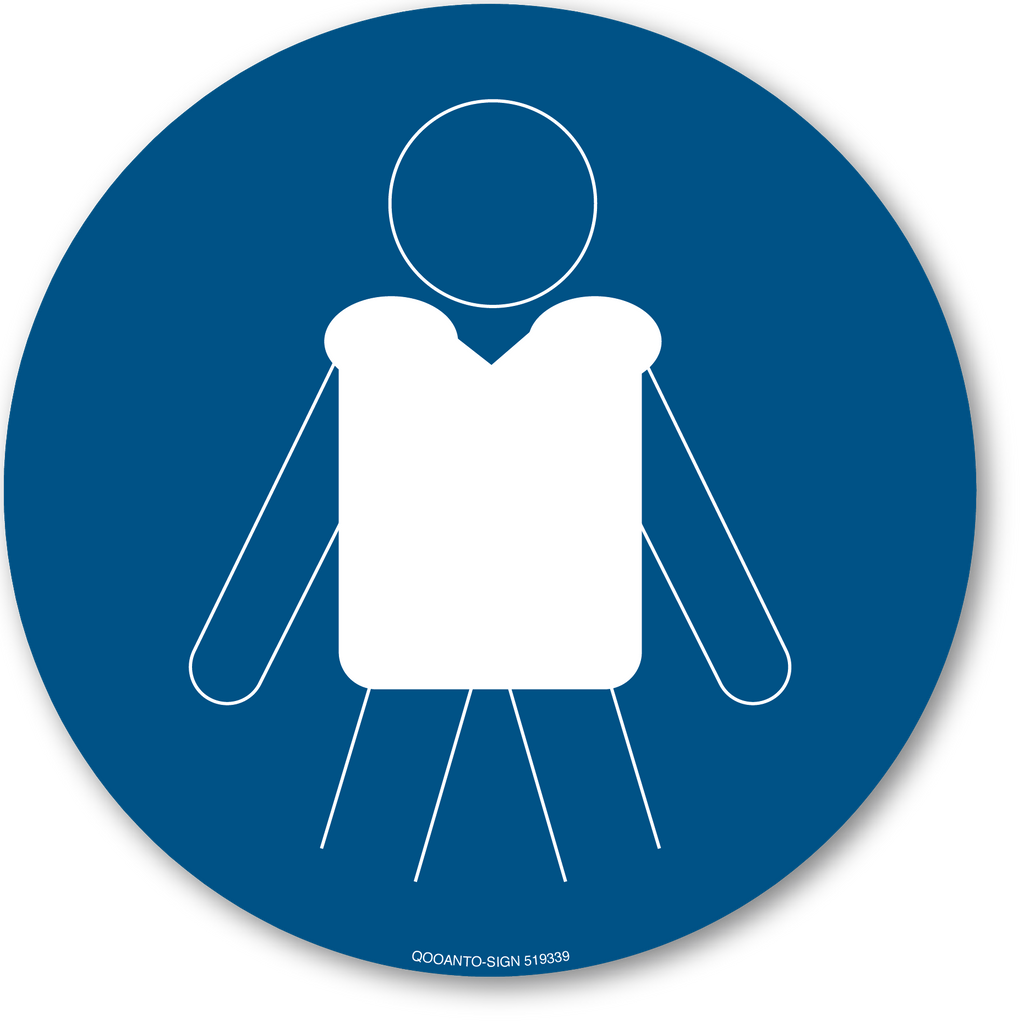 Rettungsweste Benutzen, EN ISO 7010, WSM001 Gebotsschild oder Aufkleber | Alu-Verbund oder Selbstklebefolie | Blau/Weiss | Rund