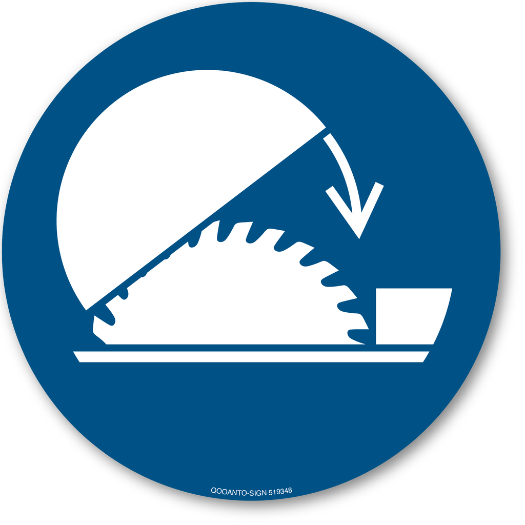 Schutzhaube Der Tischkreissäge Benutzen – eine klare, deutliche Betriebssicherheit nach EN ISO 7010 M031. Zur sicheren Kennzeichnung stehen zwei hochwertige Varianten zur Verfügung: ein robuster Schild aus Aluminium-Verbundmaterial oder eine selbstklebende Premium-Aufkleberlösung in Blau/Weiss mit UV-Schutz. Rundes Design, 3 mm stark bzw. hochwertige Polymeren-Folie – für Outdoor- und Indoor-Einsatz geeignet.