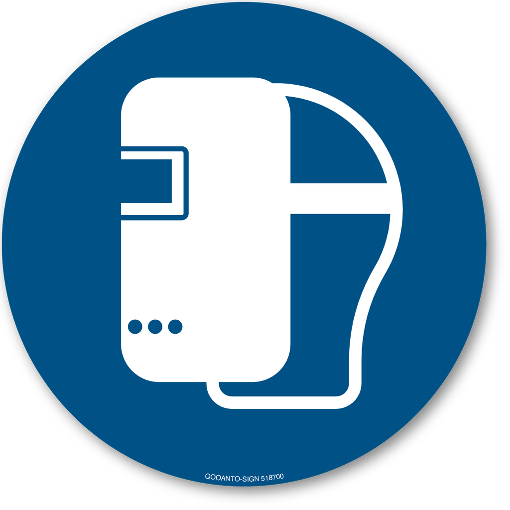 Schweißmaske Benutzen, EN ISO 7010, M019 Gebotsschild oder Aufkleber | Alu-Verbund oder Selbstklebefolie | Blau/Weiss | Rund
