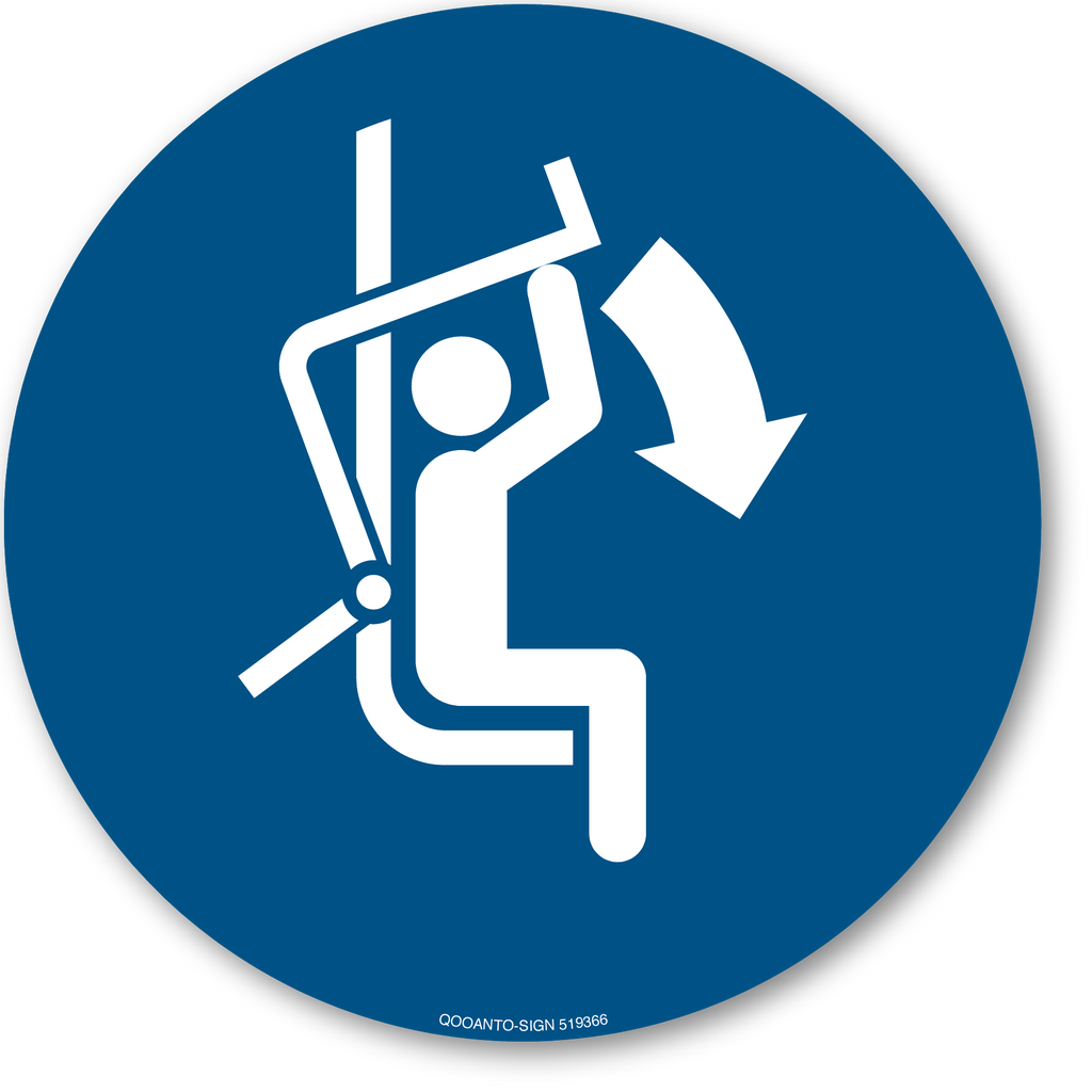 Sicherheitsbügel Des Sessellifts Schließen, EN ISO 7010, M033 Gebotsschild oder Aufkleber | Alu-Verbund oder Selbstklebefolie | Blau/Weiss | Rund