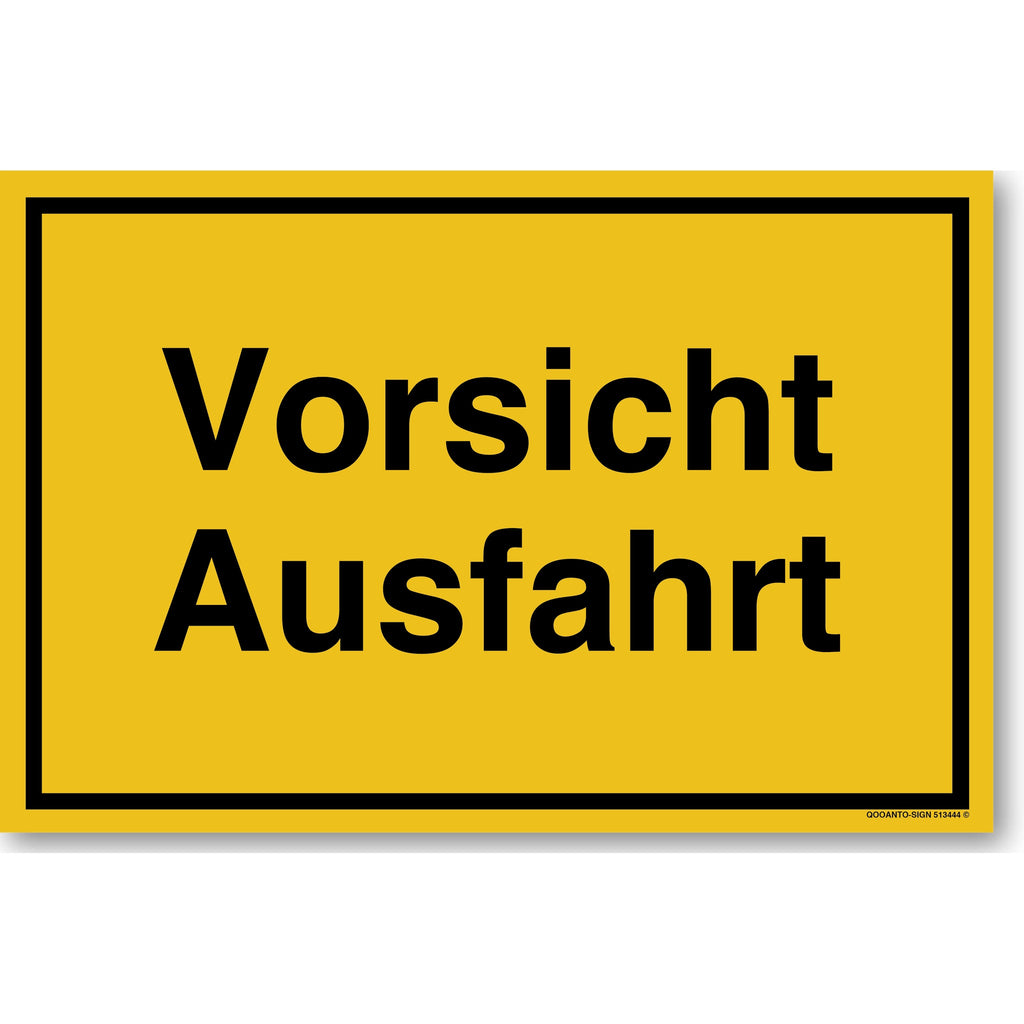 Vorsicht Ausfahrt Schild oder Aufkleber | Alu-Verbund oder Selbstklebefolie | Gelb | Rechteck | Querformat