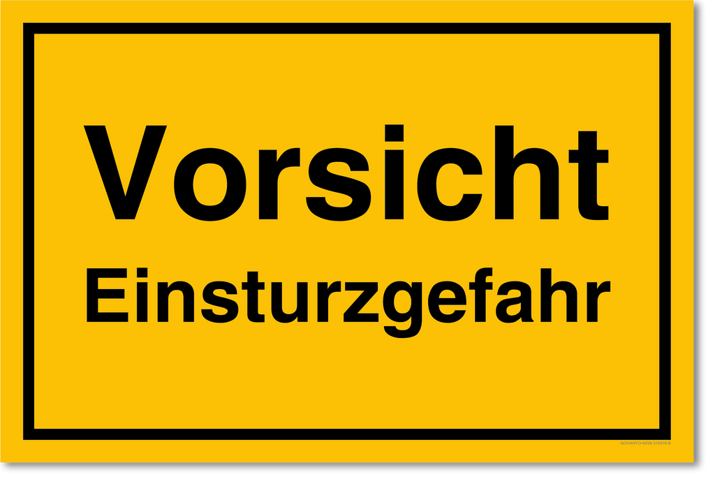 Vorsicht Einsturzgefahr Schild | Alu-Verbund | Gelb | Rechteck | Querformat