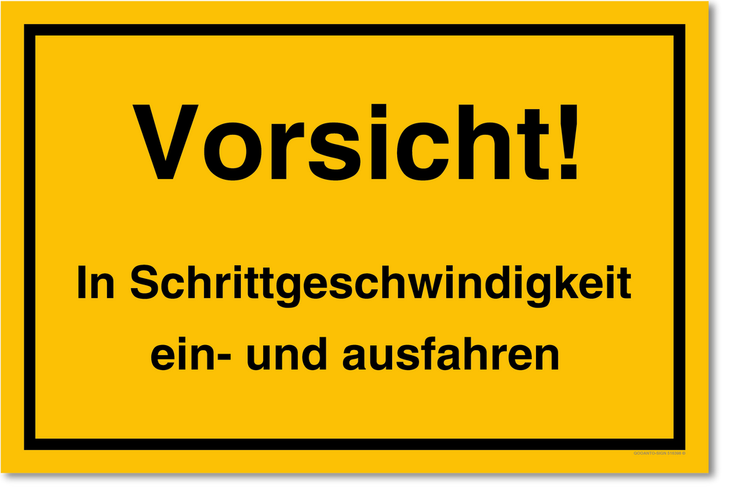 Vorsicht! In Schrittgeschwindigkeit Ein- Und Ausfahren Schild | Alu-Verbund | Gelb | Rechteck | Querformat