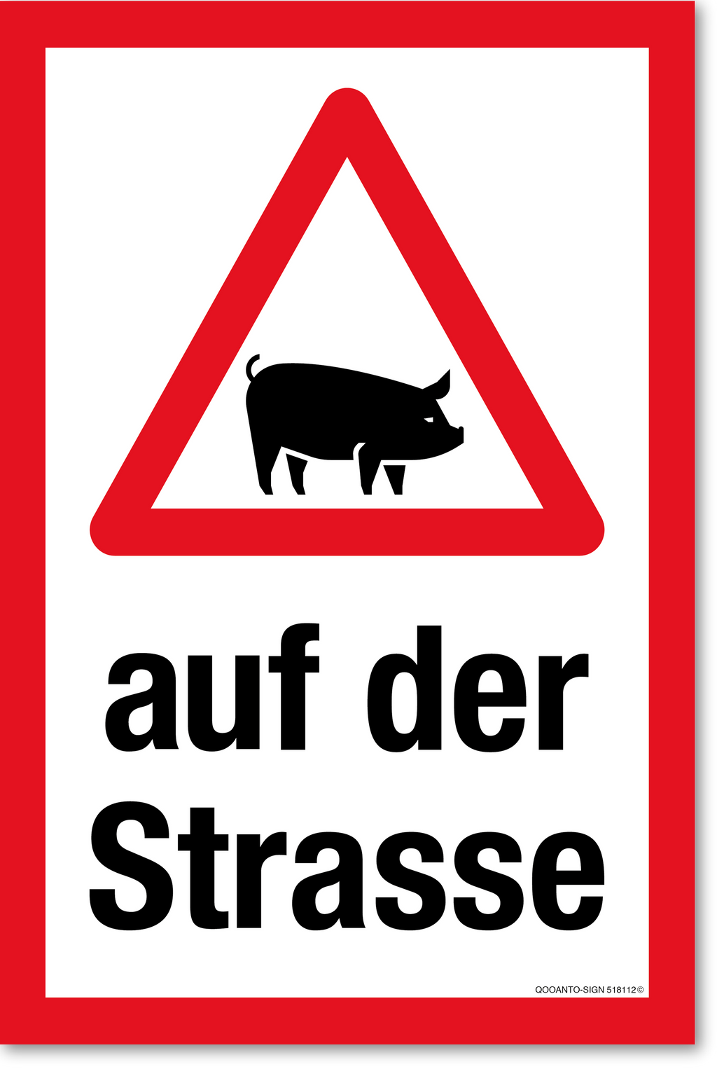 Warndreieck Mit Schwein Auf Der Strasse Schild oder Aufkleber | Alu-Verbund oder Selbstklebefolie | Weiss/Rot | Rechteck | Hochformat