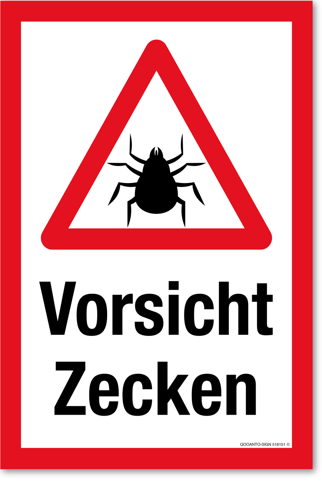 Warndreieck Mit Zecke Vorsicht Zecken Schild oder Aufkleber | Alu-Verbund oder Selbstklebefolie | Weiss/Rot | Rechteck | Hochformat