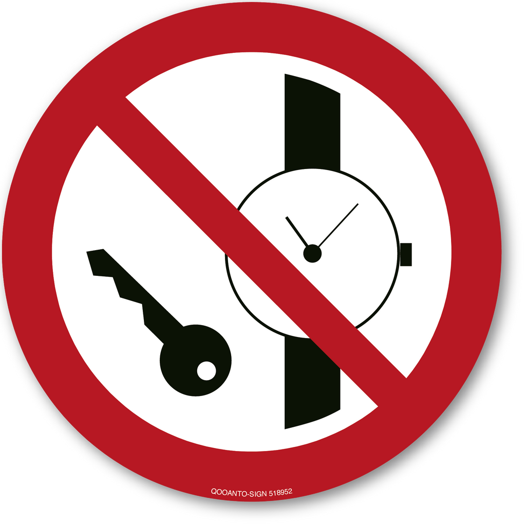 Mitführen Von Metallteilen Oder Uhren Verboten Verbotsschild oder Aufkleber | Alu-Verbund oder Selbstklebefolie | Weiss | Rund