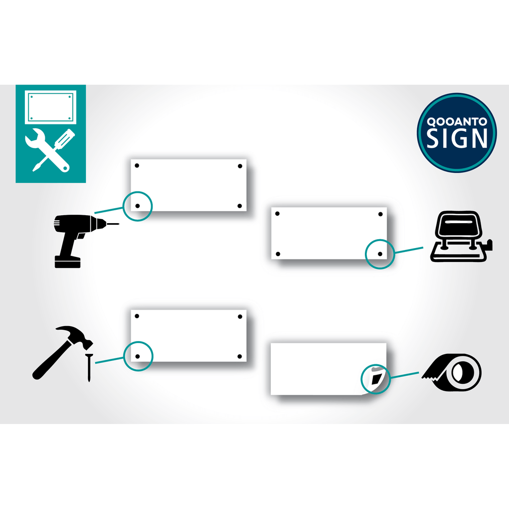 100% Einfache Montage: Egal ob gebohrt, geschraubt oder genagelt unsere Schilder bieten flexible Montageoptionen. Die Aufkleber sind blasenfrei anbringbar, dank innovativer Luftkanal-Technologie.